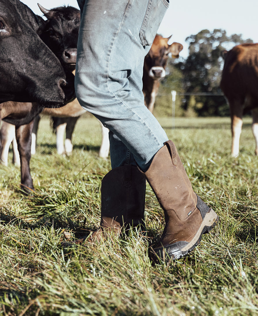 Protects like a work boot. fits like a sneaker. This waterproof pull-on style features a tough leather upper and energy-returning cushioning.